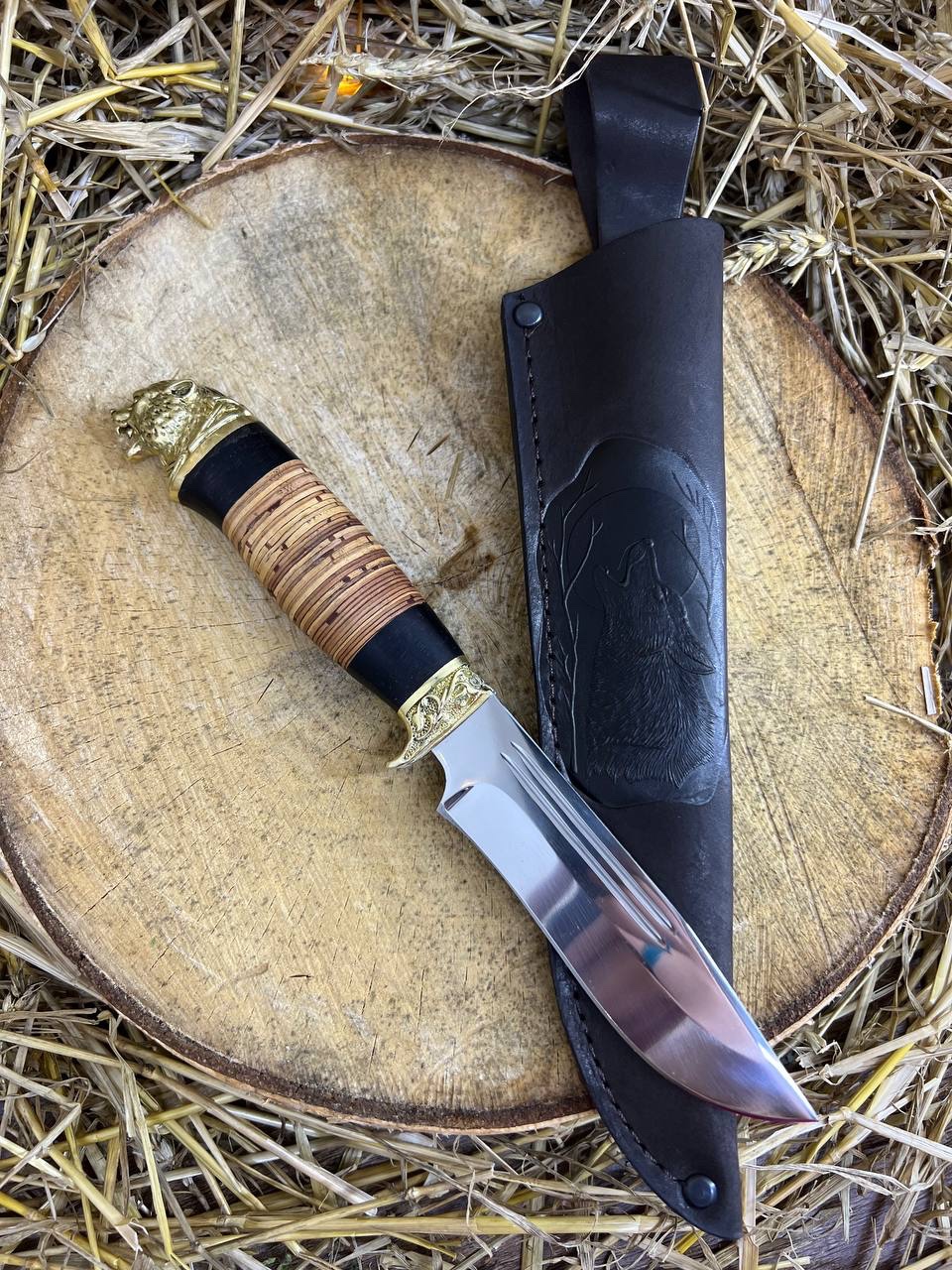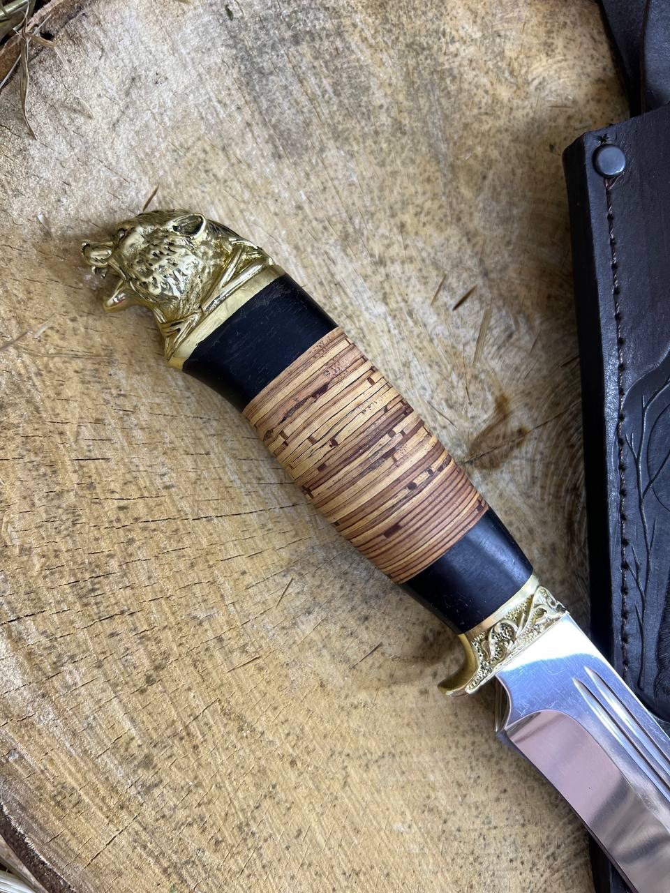Туристический нож Тайфун с головой зверя из стали 95Х18
